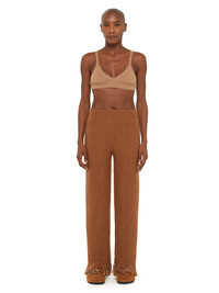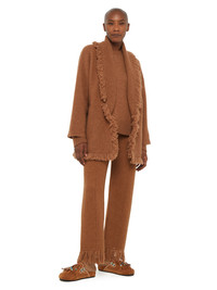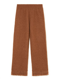 Part of our luxury wellbeing line, the Alanui Finest Pants pairs a relaxed wide-leg fit with the super soft sensation of a cashmere and silk blend in Milano stitch. Each piece in the Alanui Finest line has been specially crafted to offer comfort and timeless appeal. Featuring ribbed waistband and fringed cuffs. PRODUCT DETAILS Product Code LWHG001E24KNI0026200 Made In Italy Crafted from 71% Cashemere 19% Silk 10% Polyester This item takes two hour and an half to be knitted and another two to be assembled. The model is 177 cm and wears a size M. This item fits true to size.