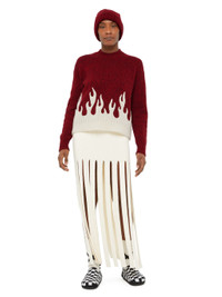 Alanui is inspired by the allure of Americana this season. Crafted from 55% recycled wool blend as part of the Alanui commitment to the future, the Fire and Flames Scarf offers a tongue-in-cheek take on all-American motor racing. Featuring a flame motif embroidered in English rib stitch onto plain jersey stitch and complete with monochrome fringed finishes. PRODUCT DETAILS Product Code LWHE074E24KNI0012703 Made In Italy Crafted from 86% Wool 10% Polyamide 4% Cashemere EMBROIDERY 80% Wool 20% Polyamide This item takes three hours to be knitted and another five hours and an half to be assembled. The model is 177 cm and wears a size M. This item fits slim.