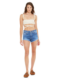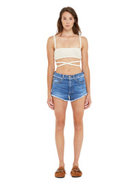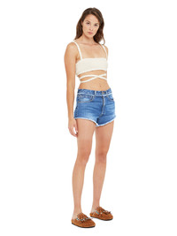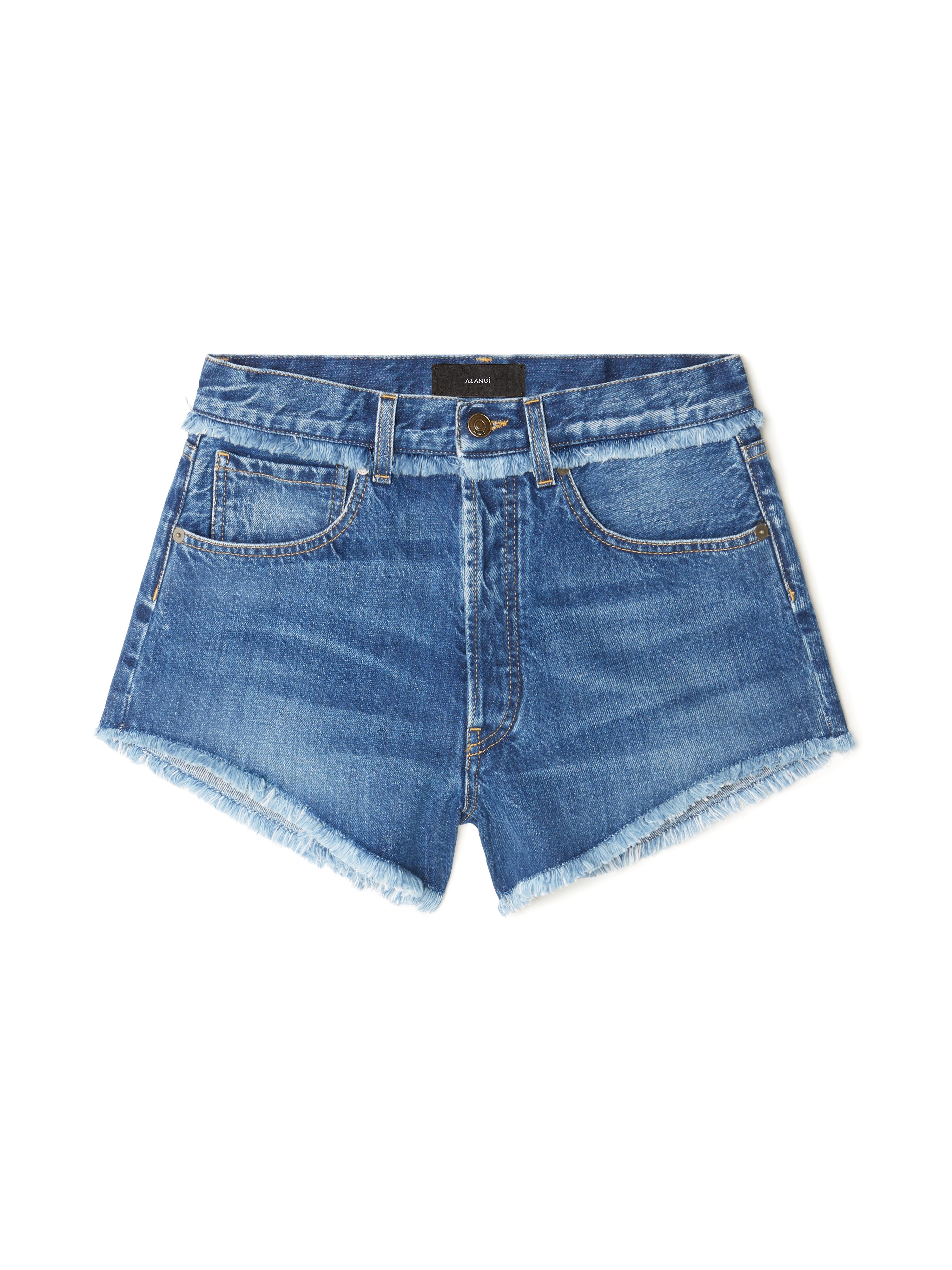 An Alanui favorite returns for the new season. Crafted from dark blue washed denim, the Fringed Denim Shorts boast fringe detailing at the cuffs and pockets in a chic rework of a classic style. DETAILS - Product Code LWYC009R25DEN0024700 - Made In Italy - Crafted from 100% Cotton. - This item weighs 320 gr. - The model is 180 cm and wears a size 27. - This item fits true to size.