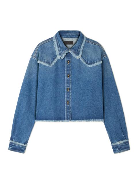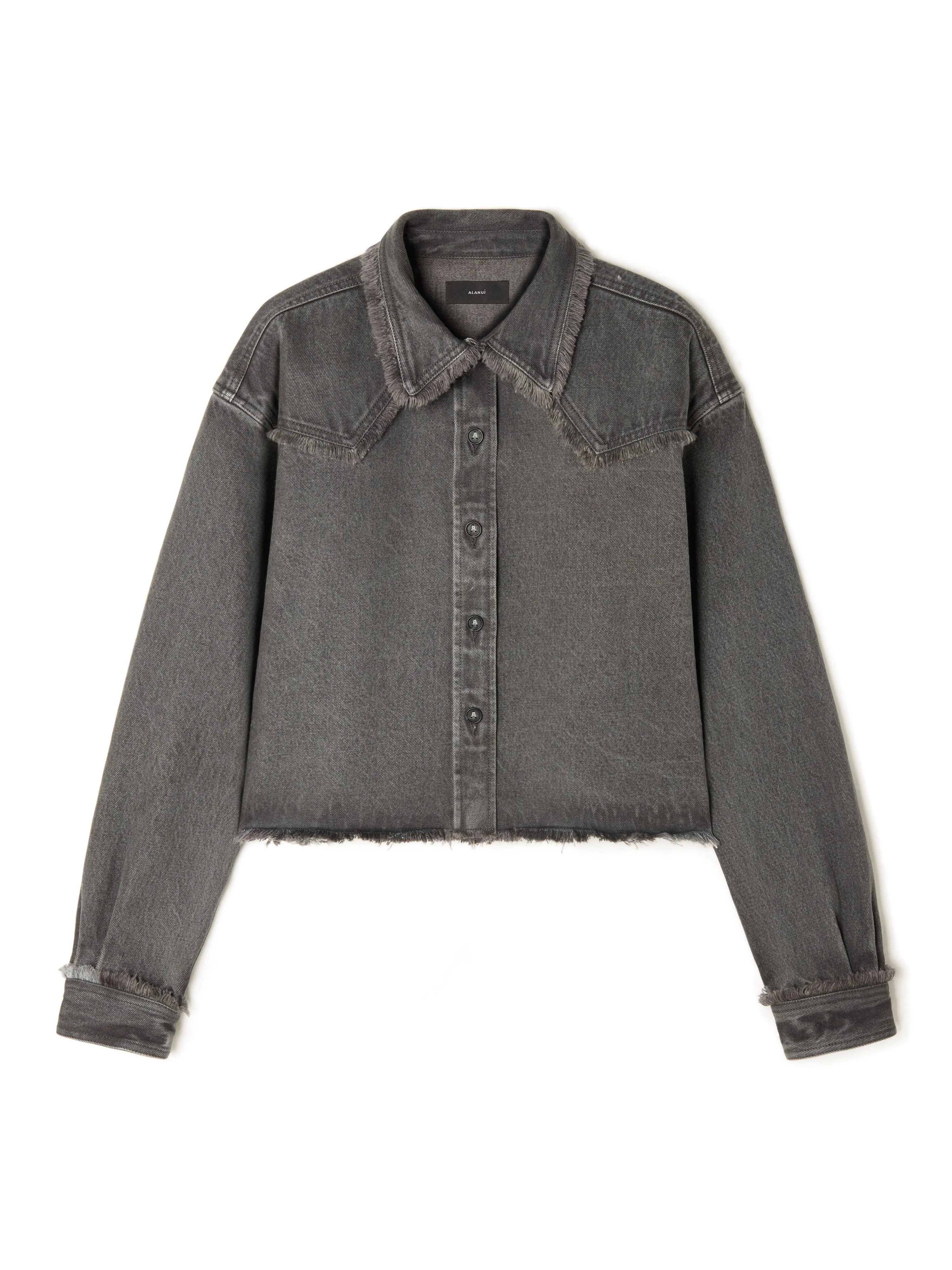 A seasonal staple with a Western twist, the Free Horizons Cropped Denim Shirt is crafted from gray stone-washed denim and features fringed detailing, signature “A”-stitched buttons, and a relaxed cropped fit. DETAILS - Product Code LWYE00BE25DEN0010600 - Crafted from 100% Cotton. - The model is 176 CM and wears a size M. - This item fits true to size.