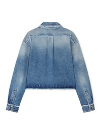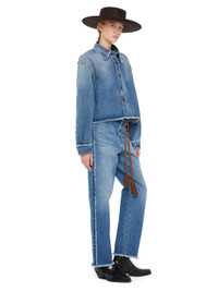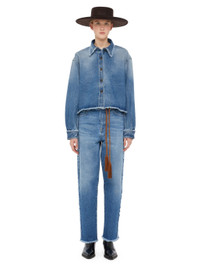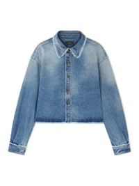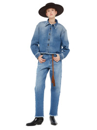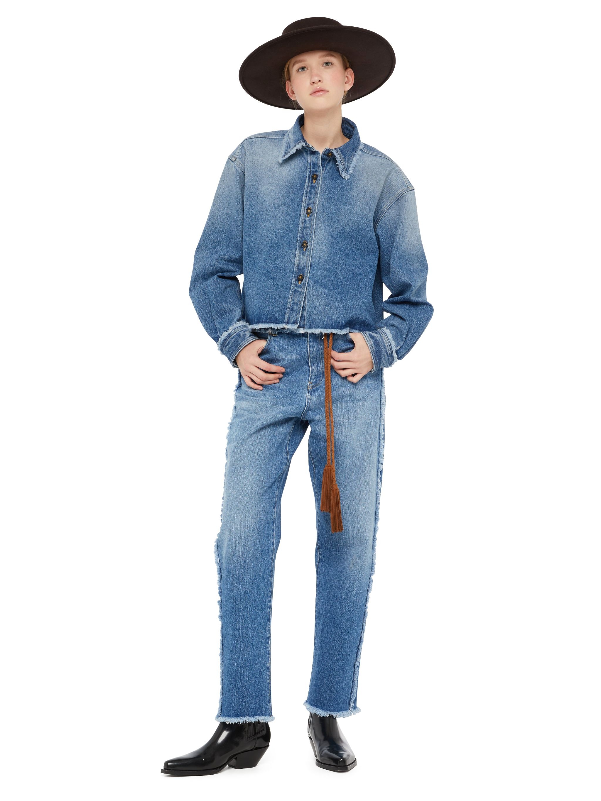 Crafted from medium blue washed denim, the Fringed Cropped Denim Shirt boasts “A” stitched buttons and fringe detailing in a chic rework of Western style. Featuring a cropped fit. PRODUCT DETAILS Product Code LWYE00AE24DEN0024545 Made In Italy Crafted from 100% Cotton. The model is 180 cm and wears a size M. This item fits true to size.