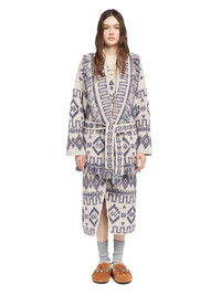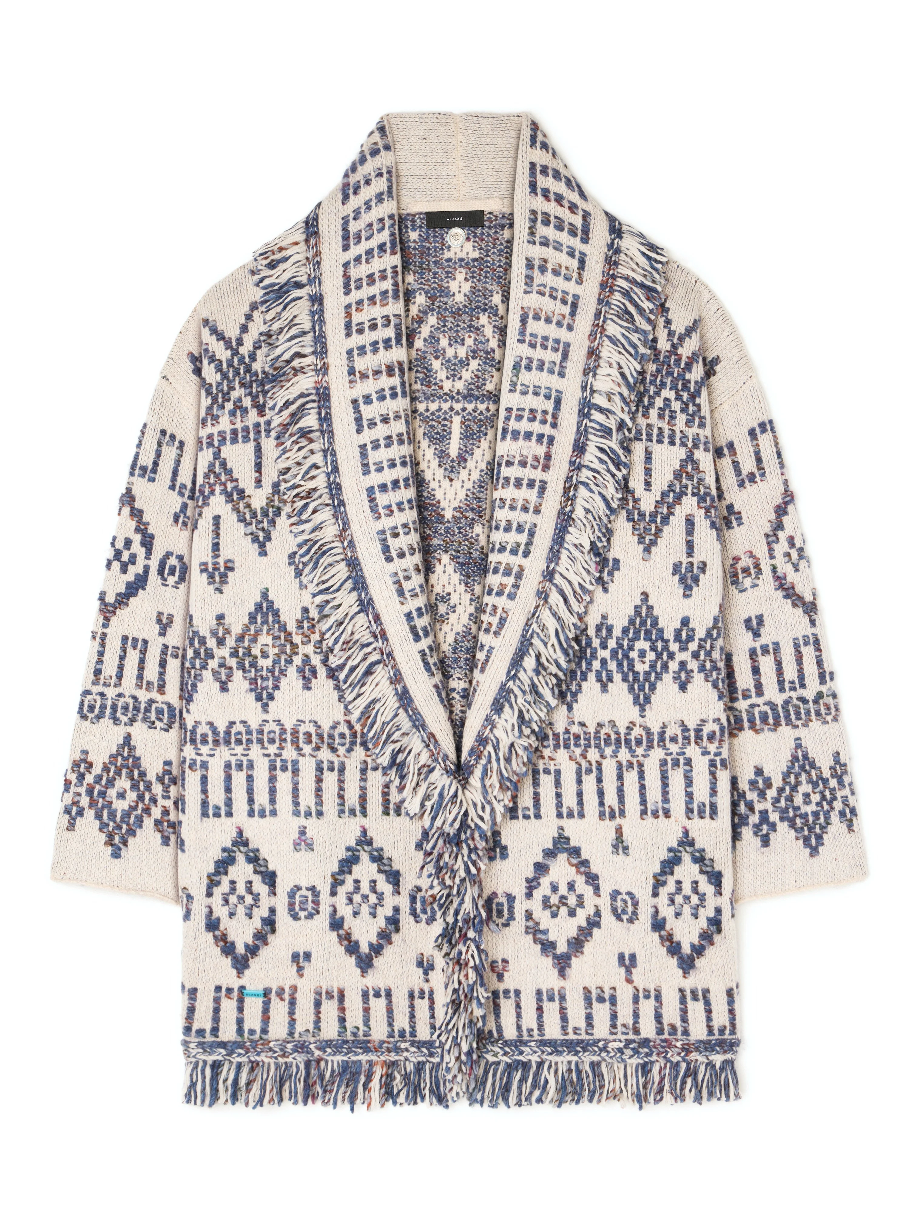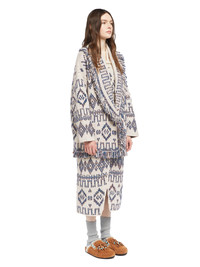 This Fall / Winter 2025, Alanui journeys to Seattle, the moody heartland of grunge. Pairing the Icon fit with a virgin wool blend, the Grunge Beat Cardigan features a geometric motif in weft knit. Washed-out hues echo the rebellious rhythm of the Pacific Northwest. Finished with a matching tie-belt and fringed edges. DETAILS - Product Code LWHB064E25KNI0050F44 - Crafted from 72% Virgin Wool 28% Acrylic. - The model is 178 CM and wears a size M. - This item fits true to size.