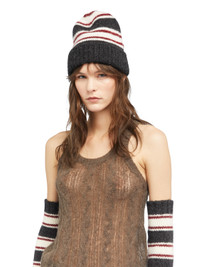 This Fall / Winter 2025, a trip around the world takes Alanui to Seattle. The Grunge Stripes Beanie revives a classic underground style in a soft alpaca wool blend. DETAILS - Product Code LWLC012E25KNI001070F - Crafted from 68% Alpaca 22% Polyammide 10% Virgin Wool.