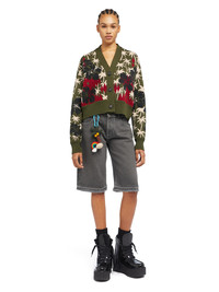 Alanui’s Fall / Winter 2025 trip around the world kicks off in Hawaii where the Hibiscus Bloom Cardicrop celebrates the island’s iconic native flower with a cropped fit. Crafted in Italy from the softest virgin wool, this style pairs the Alanui Iconic Pattern with an all-over palm motif and Hibiscus blooms in intricate double jacquard knit. Finished with real horn buttons and ribbed trims. DETAILS - Product Code LWHB055E25KNI0025625 - Crafted from 100% Virgin Wool. - The model is 180 CM and wears a size M. - This item fits true to size.
