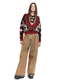 A contemporary take on the signature cardigan, the Icon Jacquard Cardi-Bomber pairs the iconic Alanui Pattern with a tailored cropped fit. Exquisitely crafted from cashmere and virgin wool using intricate double jacquard knit, the Cardi-Bomber features a multicolored fringed collar, ribbed trims, and real horn buttons. DETAILS - Product Code LWHB026E25KNI0020725 - Crafted from 70% Virgin Wool 30% Cashmere. - The model is 178 CM and wears a size M. - This item fits true to size.