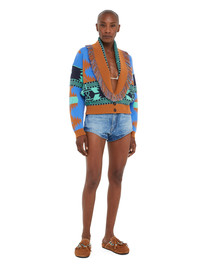 Reimagining the signature cardigan, the Icon Jacquard Cardi-Bomber pairs the Iconic Alanui Pattern with a contemporary cropped fit. Finely crafted from cashmere and virgin wool using double jacquard knit, the Cardi-Bomber features a multicolored fringed collar, real horn buttons and ribbed finishes. DETAILS - Product Code LWHB026R25KNI0013864 - Made In Italy - Crafted from 70% Virgin Wool, 30% Cashmere. - This item weighs 805 gr and takes three hours to be knitted and another five and an half to be assembled. - The model is 177 cm and wears a size M. - This item fits true to size.
