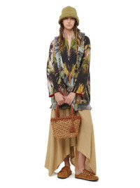 Alanui builds on the iconic cardigan design to offer a new signature weave inspired by the Alanui “A”. The Alanui Icon Leather & Raffia Small Tote is handcrafted from 75 meters of leather and raffia and finished with handmade crochet leather details. Embellished with an “A” monogram charm and matching in-bag pochette, each bag takes 12 hours to complete. PRODUCT DETAILS Made in Italy Product Code LWNA007S23FAB0011760