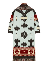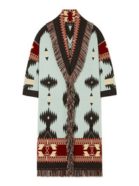 Evolution of the original cardigan style, the Icon Jacquard Coat is finely crafted to keep you warm and stylish this winter. Made in Italy from extra-fine virgin Merino wool using double jacquard knit, the Icon Jacquard Coat pairs the Iconic Alanui Pattern with an elegant long Icon fit. Featuring a two-tone tie belt and multicolored fringed edges. DETAILS - Product Code LWHQ003R26KNI001416E - Crafted from 100% Virgin Wool Product weight: 1610 grTaking six and a half hours to be knitted and another six to be assembled. - The model is 180 cm and wears a size M. - The item fits true to size.