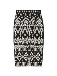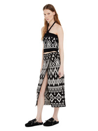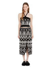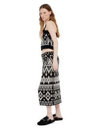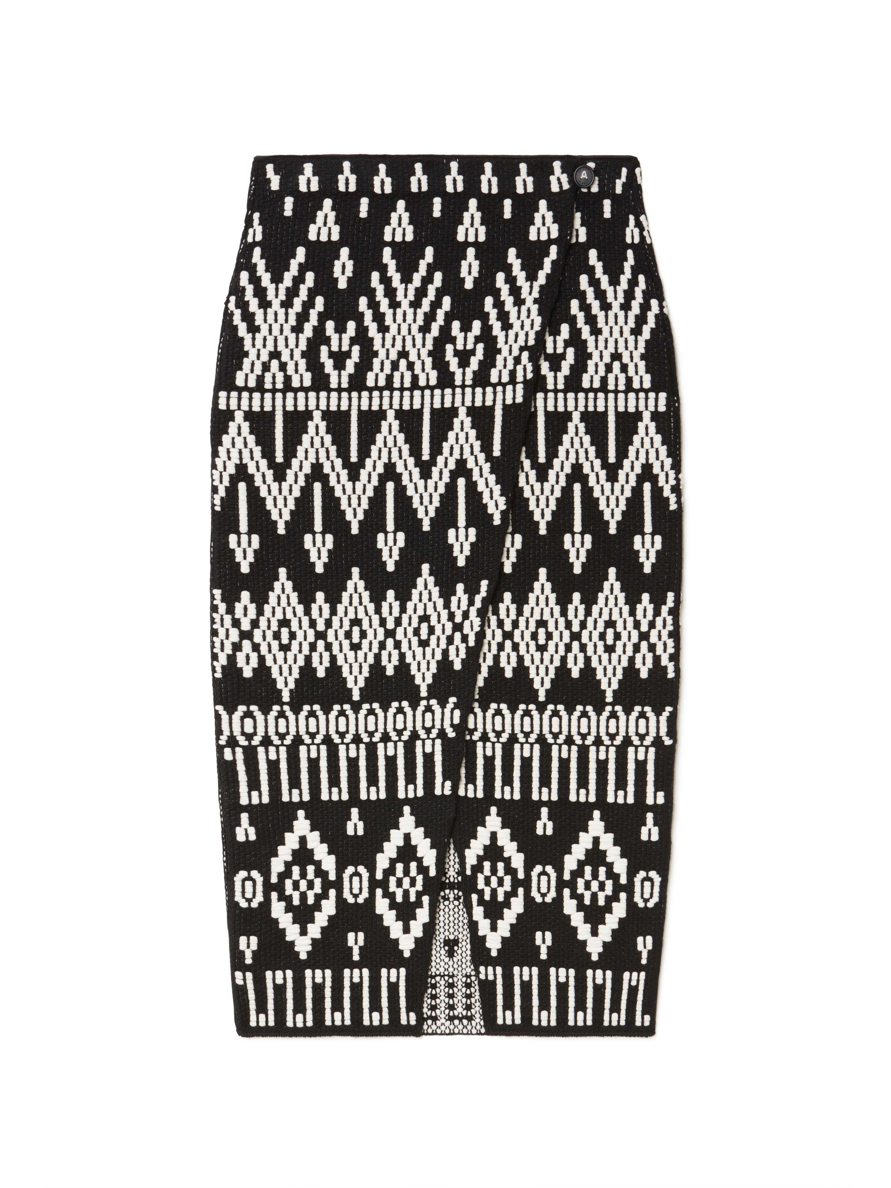 Alanui embarks on an unforgettable journey to the African continent this season, finding inspiration in its vibrant artistic heritage. Crafted from a virgin wool and cotton blend using a special weft knitting technique, the Jungle Beat Skirt pairs a wrap fit with a dynamic geometric motif, complete with real horn buttons. Style with matching top. DETAILS - Product Code LWHL02DR25KNI0011001 - Made In Italy - Crafted from 48% Virgin Wool, 40% Cotton, 12% Polyamide. - This item weighs 800 gr and takes four hours to be knitted and another three to be assembled. - The model is 176 cm and wears a size M. - This item fits slim.