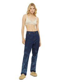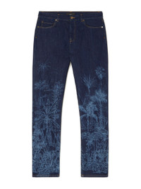 The Jungle Denim Pants are laser-printed with a botanical ‘Toile de Jouy’ pattern inspired by 18th-century textiles. A subtle design that conjures up the lush tropical landscape. Featuring a comfortable loose fit. Pair with matching chemisier for a total jungle look. PRODUCT DETAILS Product Code LWYB002R24DEN0014000 Made in Italy. Crafted from 100% Cotton. Lining: 65% Polyester and 35% Cotton. The model is 177 cm and wears a size 27. This items fits true to size.