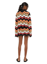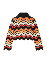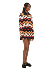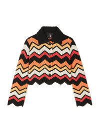 For Spring / Summer 2024, Alanui travels through the kaleidoscopic colors, scents, and cultures of India. Made from a cotton blend, the Kaleidoscopic Jacket uses 3D link stitch to create a mesmerizing multicolored chevron motif that nods to 70s style, further complemented by a zig-zag hem. Featuring a solid color collar and real horn buttons. PRODUCT DETAILS Product Code LWHQ010R24KNI0011084 Made in Italy. Crafted from 76% Cotton and 24% Polyamide. The model is 179 cm and wears a size M. This items fits true to size.