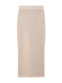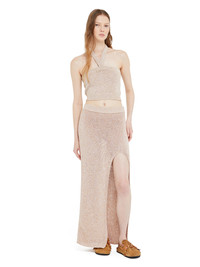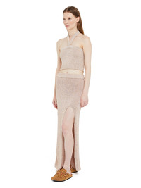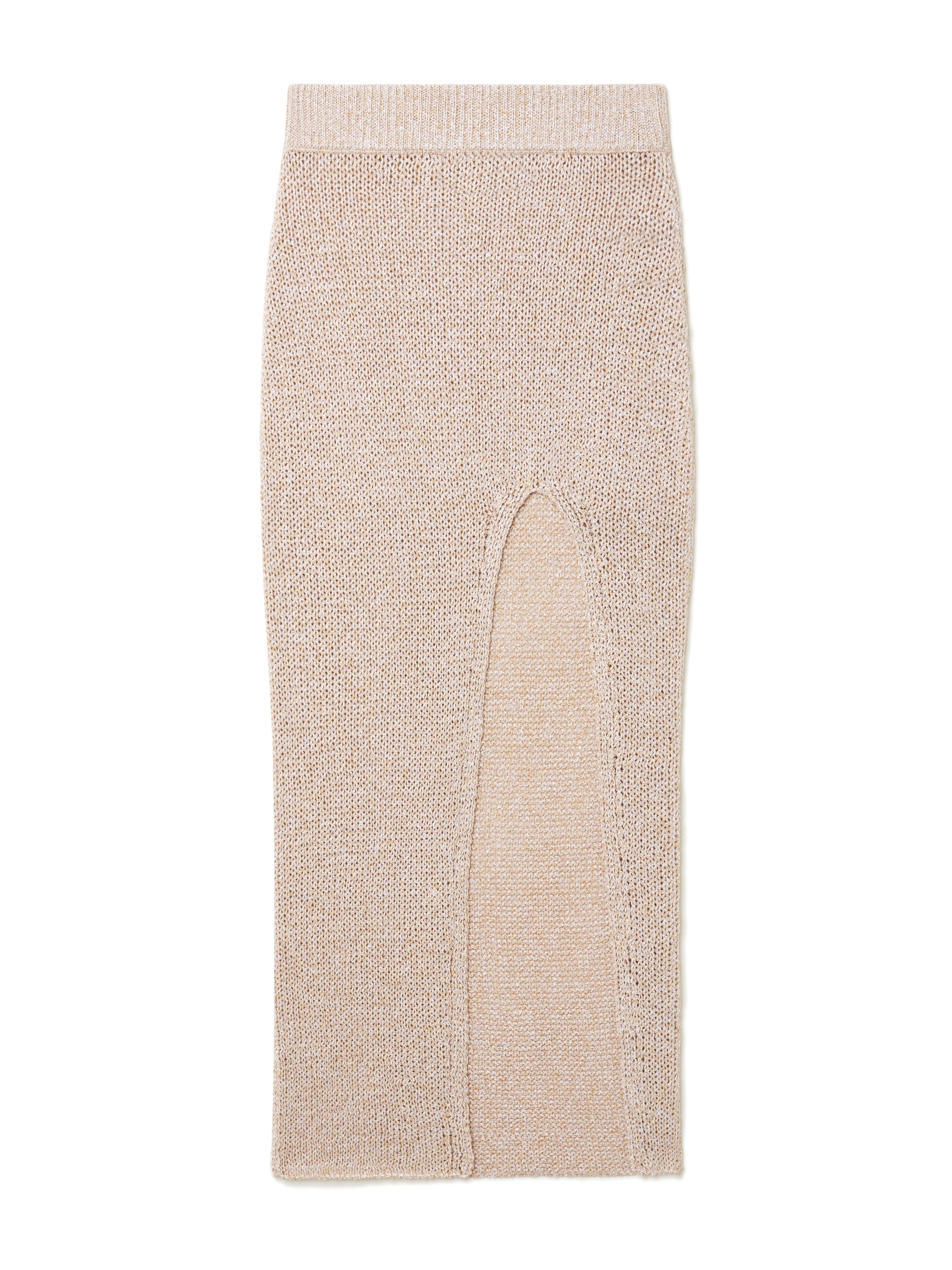 Evoking this season's mood of ocean-kissed, sandy shores, the Shady Beach Skirt elegantly hugs the body. Designed for superior fit and quality, a long, high-slitted silhouette is paired with a textural pattern in plain jersey stitch. Style with matching top. DETAILS - Product Code LWHL02CR25KNI0016100 - Made In Italy - Crafted from 40% Cotton, 60% Polyester. - This item weighs 650 gr and takes three hours and an half to be knitted and another three to be assembled. - The model is 176 cm and wears a size M. - This item fits slim.