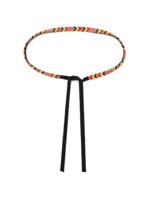 Add color and dimension to your look with the Memories of the Savannah Belt. Crafted from a soft gros-grain strap and embellished with intricate hand-embroidered beadwork in a vibrant kaleidoscope of colors, paying homage to a rich artistic heritage. DETAILS - Product Code LWRB019R25MAT0015184 - Made In Italy - Crafted from Padding: 100% Cotton. Details: 55% Cotton, 45% Viscose. Embroidery: 100% Glass. - This item weighs 120 gr.