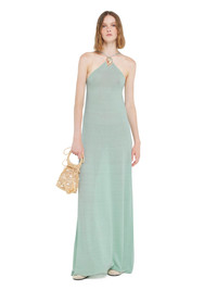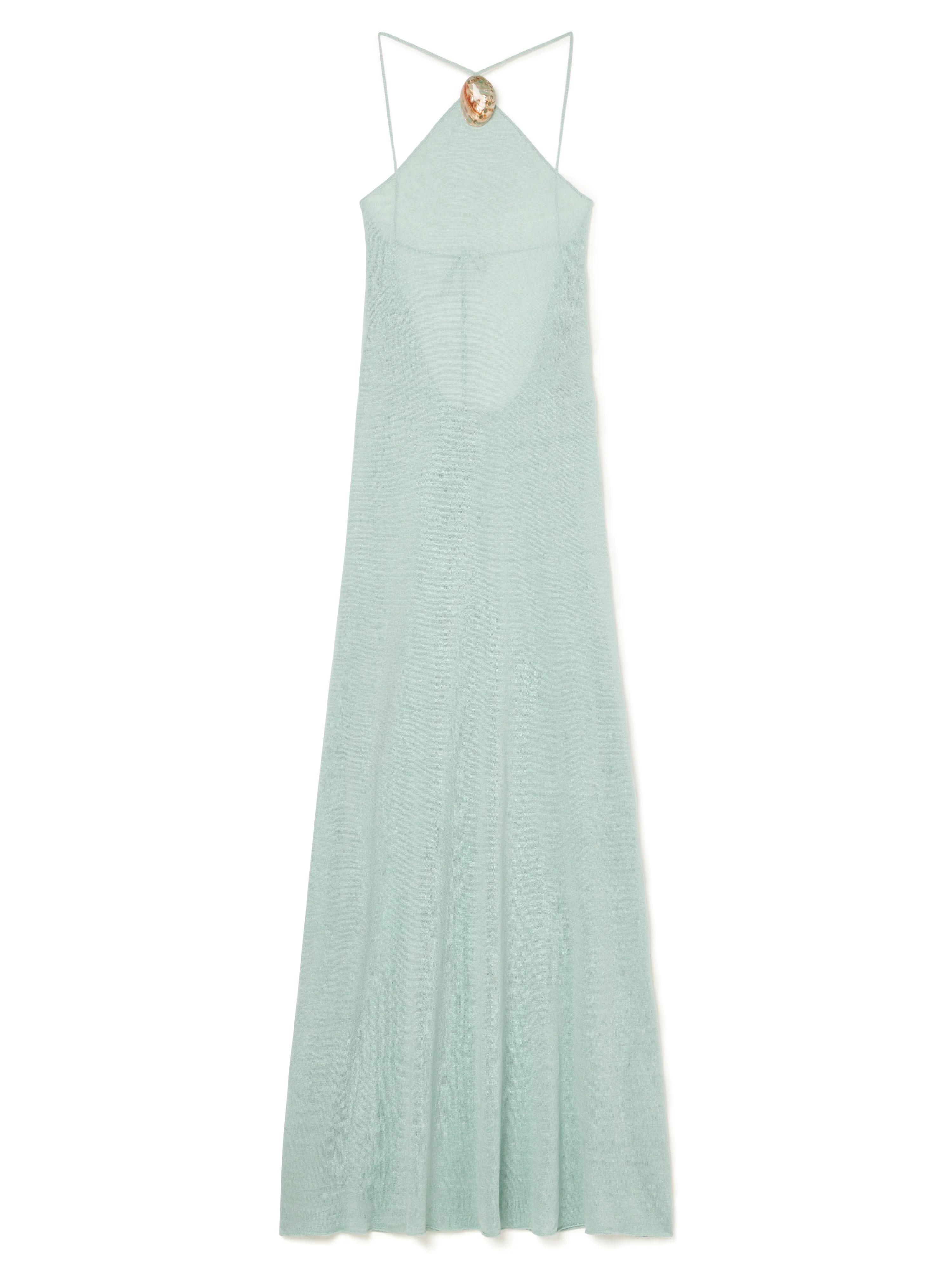 Alanui channels inner mysticism this Spring / Summer 2026. Crafted in Italy from flowing linen, the Mermaid Inside Halter Neck Dress features a halterneck silhouette and is adorned with a real shell gifted by the sea. DETAILS - Product Code LWHI062R26KNI0014141 - Crafted from 100% Linen Application: 100% Seashell Product weight: 550 grTaking three hours to be knitted and another two and a half to be assembled. - The model is 180 cm and wears a size M. - The item fits true to size.