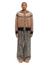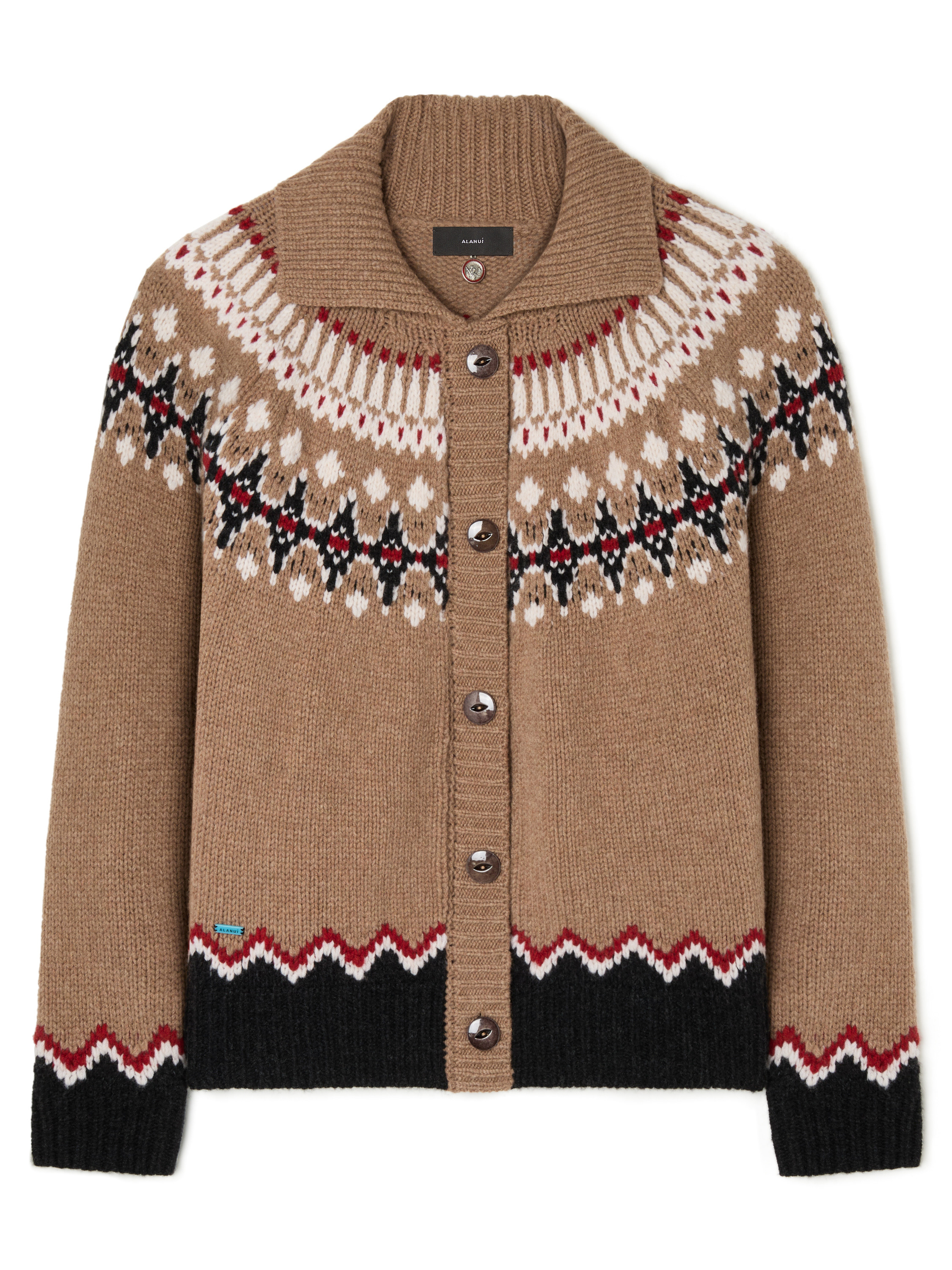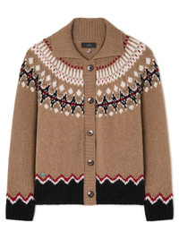 Alanui answers the call of the wild this season. Crafted from virgin wool, the cozy Sweet Winter Jacket pays tribute to classic Nordic style with a reimagined Fair Isle motif in placed jacquard knit. Finished with side seam pockets, bone fisheye buttons, and ribbed trims. DETAILS - Product Code LWHQ01DE25KNI0016407 - Crafted from 100% Virgin Wool. - The model is 177 CM and wears a size M. - This item fits true to size.