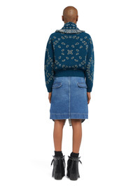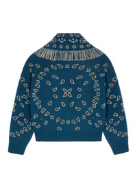 A contemporary take on a signature style, the Bandana Jacquard Cardi-Bomber pairs the iconic Bandana Pattern with a tailored cropped fit. Exquisitely crafted from cashmere and virgin wool using intricate double jacquard knit, the Cardi-Bomber features a multicolored fringed collar, ribbed trims, and real horn buttons. DETAILS - Product Code LWHB026E25KNI0014856 - Crafted from 70% Virgin Wool 30% Cashmere. - The model is 178 CM and wears a size M. - This item fits true to size.