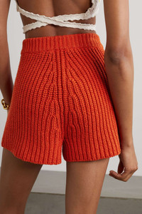 EDITORS'NOTES Alanui's 'Palm Springs' shorts are rib-knitted from cotton, so they're perfect for days spent at the beach - or lounging at home. They're designed for a slightly loose fit and have a comfortable elasticated waistband. SIZE & FIT - Fits true to size, take your normal size - High-rise, designed for a loose fit - Chunky knit - Model is 180cm/ 5’11” and is wearing a size Small DETAILS & CARE - Tomato-red cotton - Pull on - 100% cotton - Dry clean - Designer color: Orange Gloss