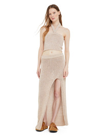 Evoking this season's mood of ocean-kissed, sandy shores, the Shady Beach Top pairs an adjustable halterneck fit with a textural pattern in plain jersey stitch. Complete with ribbed finishes. DETAILS - Product Code LWHT00AR25KNI0026100 - Made In Italy - Crafted from 40% Cotton, 60% Polyester. - This item weighs 250 gr and takes two hours to be knitted and another one to be assembled. - The model is 176 cm and wears a size M. - This item fits slim.