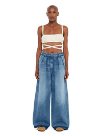 The Spring/Summer 2025 collection travels to Africa for inspiration. Crafted from medium wash denim, the Sunny Crochet Denim Pants feature a wide-leg fit with ripped details for a subtle lived-in feel. An everyday style brightened up by vibrant crochet detailing on the back pocket. Pair with matching shirt for a colorful and casual total look. DETAILS - Product Code LWYB003R25DEN0014400 - Made In Italy - Crafted from 100% Cotton. - The model is 177 cm and wears a size 27. - This item fits wide.