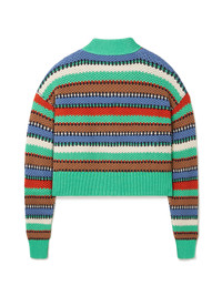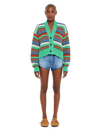 Alanui travels to Africa for inspiration this season. Knitted from organic cotton, the Sunny Stripes Cardicrop captures the unmistakable hues of the African continent in an irregular stripe pattern. Featuring a cropped fit and complete with real horn buttons and ribbed finishes. DETAILS - Product Code LWHB055R25KNI003516D - Made In Italy - Crafted from 100% Cotton. - This item weighs 104 gr and takes four hours and an half to be knitted and another four and an half to be assembled. - The model is 177 cm and wears a size M. - This item fits true to size.
