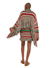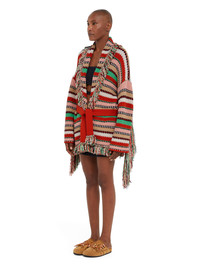This Spring/Summer 2025, the signature Alanui cardigan travels to Africa for inspiration. Crafted from organic cotton using waffle stitch, the Sunny Stripes Cardigan captures the unmistakable hues of pink dawns, vast savannahs, lush forests and golden beaches in an irregular stripe pattern, embellished by ribbon fringing along the back. Featuring the original Icon fit, matching tie belt and multicolored fringed edges. DETAILS - Product Code LWHB064R25KNI00D3020 - Made In Italy - Crafted from 100% Cotton. - This item weighs 1800 gr and takes five hours to be knitted and another seven to be assembled. - The model is 177 cm and wears a size M. - This item fits true to size.