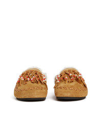 Made in Italy, the Alanui Journey Mules are embellished with handmade embroidery, leather and suede tassels and beads made from recycled plastic. Featuring a leather covered anatomical footbed and Vibram rubber sole for the utmost comfort. Designed for your journey. PRODUCT DETAILS Product Code LWIJ004F23LEA0016000 Made in Italy Crafted from 100% Calf Leather. Sole is made from Rubber.