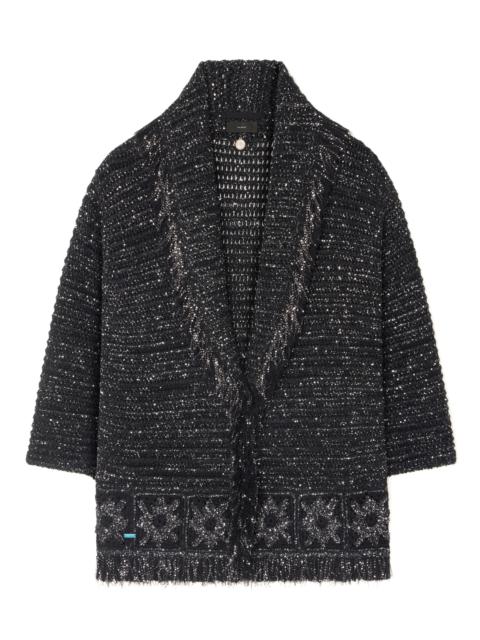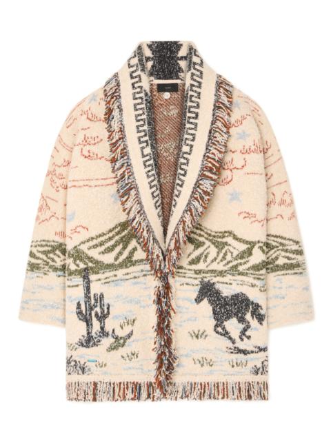 This Fall / Winter 2025, a trip around the world takes Alanui to Seattle, the legendary home of grunge. Crafted from an alpaca blend in a jacquard wave motif, the Shattered Stripes Cardigan pairs the original Icon fit with a textured design that captures the metropolitan mood. Finished with a matching jacquard belt and fringed edges. DETAILS - Product Code LWHB064E25KNI0030784 - Crafted from 64% Alpaca 20% Polyammide 10% Wool 6% Virgin Wool. - The model is 177 CM and wears a size M. - This item fits true to size.