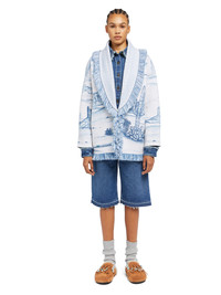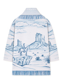 This Fall / Winter 2025, Alanui crosses the oceans and lands in the desert between Texas and Monument Valley. Pairing the original Icon fit with the softest virgin wool, the Silent Rider Cardigan captures the raw beauty and romance of Western tales in a high-definition pixel-effect double jacquard knit. Finished with a two-tone tie belt and multicolored fringed edges. DETAILS - Product Code LWHB064E25KNI00F0F45 - Crafted from 100% Virgin Wool. - The model is 180 CM and wears a size M. - This item fits true to size.