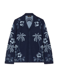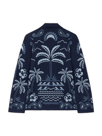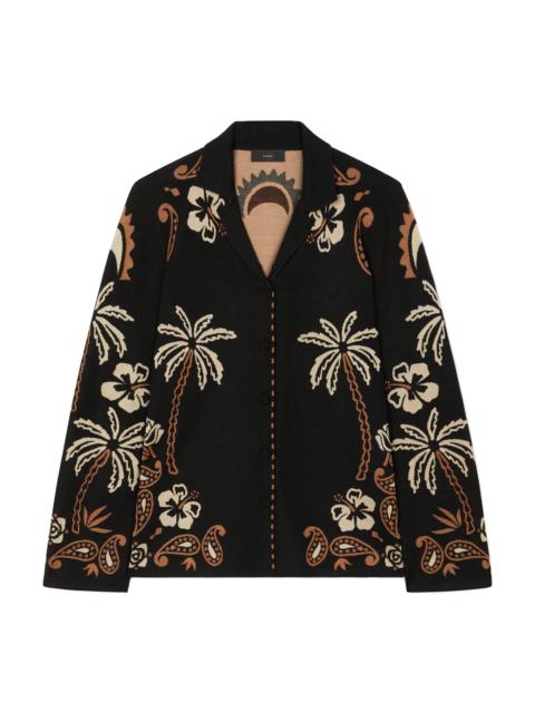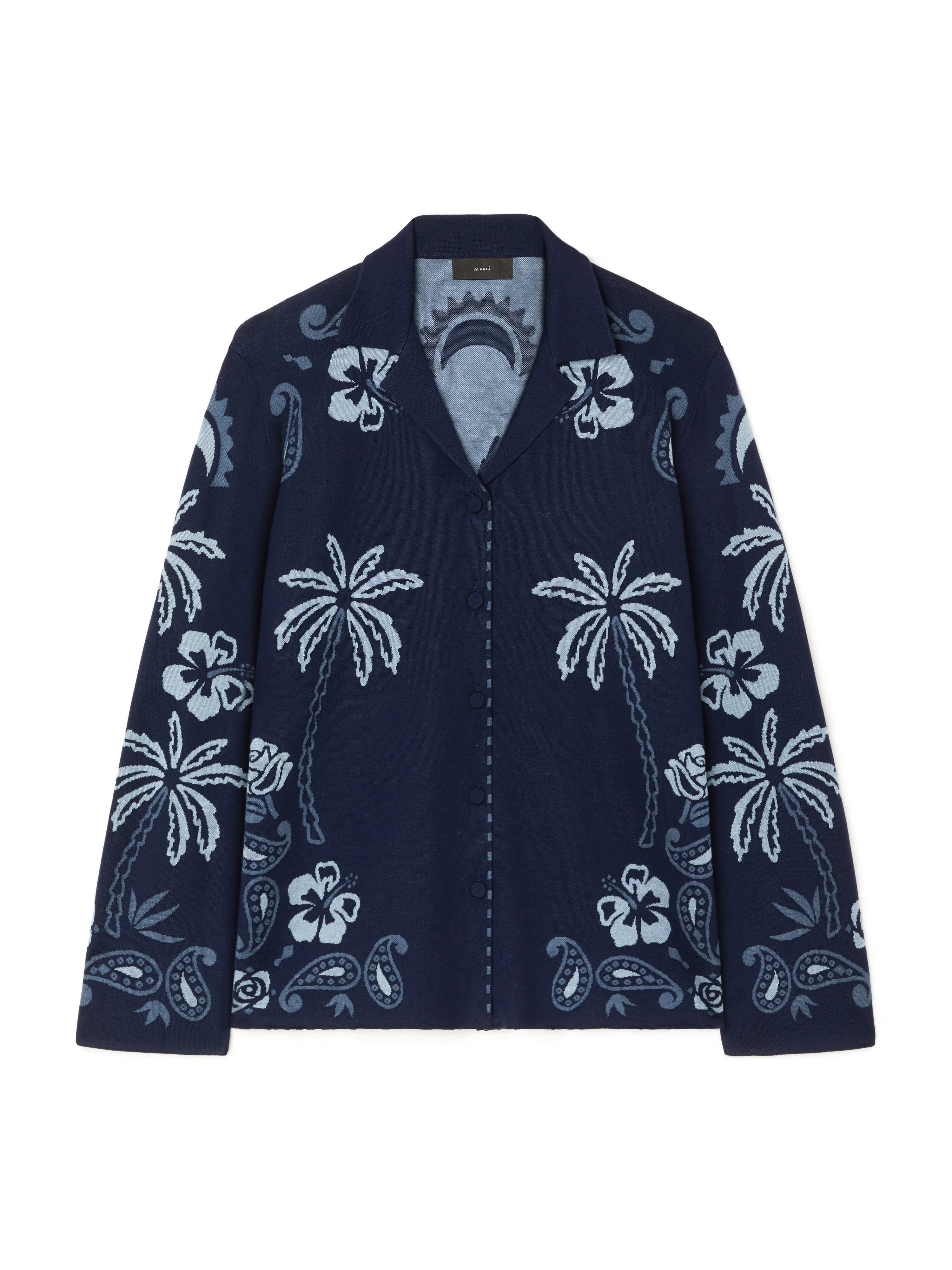 This Fall / Winter 2025, Alanui celebrates the splendor of the natural world. Palms, ocean waves, and hibiscus flowers form a textured foulard motif to remind us that paradise is all around us. The Glimpse of Eden Shirt is lovingly crafted from a virgin wool and silk blend using intricate double jacquard knit. Featuring knitted-covered buttons. DETAILS - Product Code LWHY001E25KNI0024642 - Crafted from 56% Virgin Wool 44% Silk. - The model is 180 CM and wears a size M. - This item fits true to size.