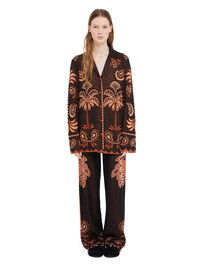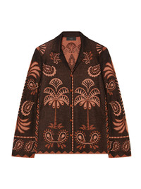 This Spring/Summer 2025, Alanui celebrates the splendor of the natural world. Crafted in Italy from a silk blend using double jacquard technique, the Wild Wonder Shirt features a nature-inspired foulard motif and contrasting textures. Complete with a knitted covered buttons. DETAILS - Product Code LWHY001R25KNI0011075 - Made In Italy - Crafted from 76% Silk, 15% Viscose, 9% Polyester. - This item weighs 300 gr and takes three hours and an half to be knitted and another four to be assembled. - The model is 176 cm and wears a size M. - This item fits true to size.