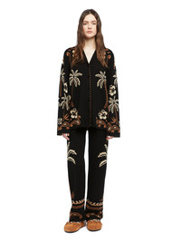 This Fall / Winter 2025, Alanui celebrates the splendor of the natural world. Palms, ocean waves, and hibiscus flowers form a textured foulard motif to remind us that paradise is all around us. The Glimpse of Eden Shirt is lovingly crafted from a virgin wool and silk blend using intricate double jacquard knit. Featuring knitted-covered buttons. DETAILS - Product Code LWHY001E25KNI0021062 - Crafted from 56% Virgin Wool 44% Silk. - The model is 178 CM and wears a size M. - This item fits true to size.