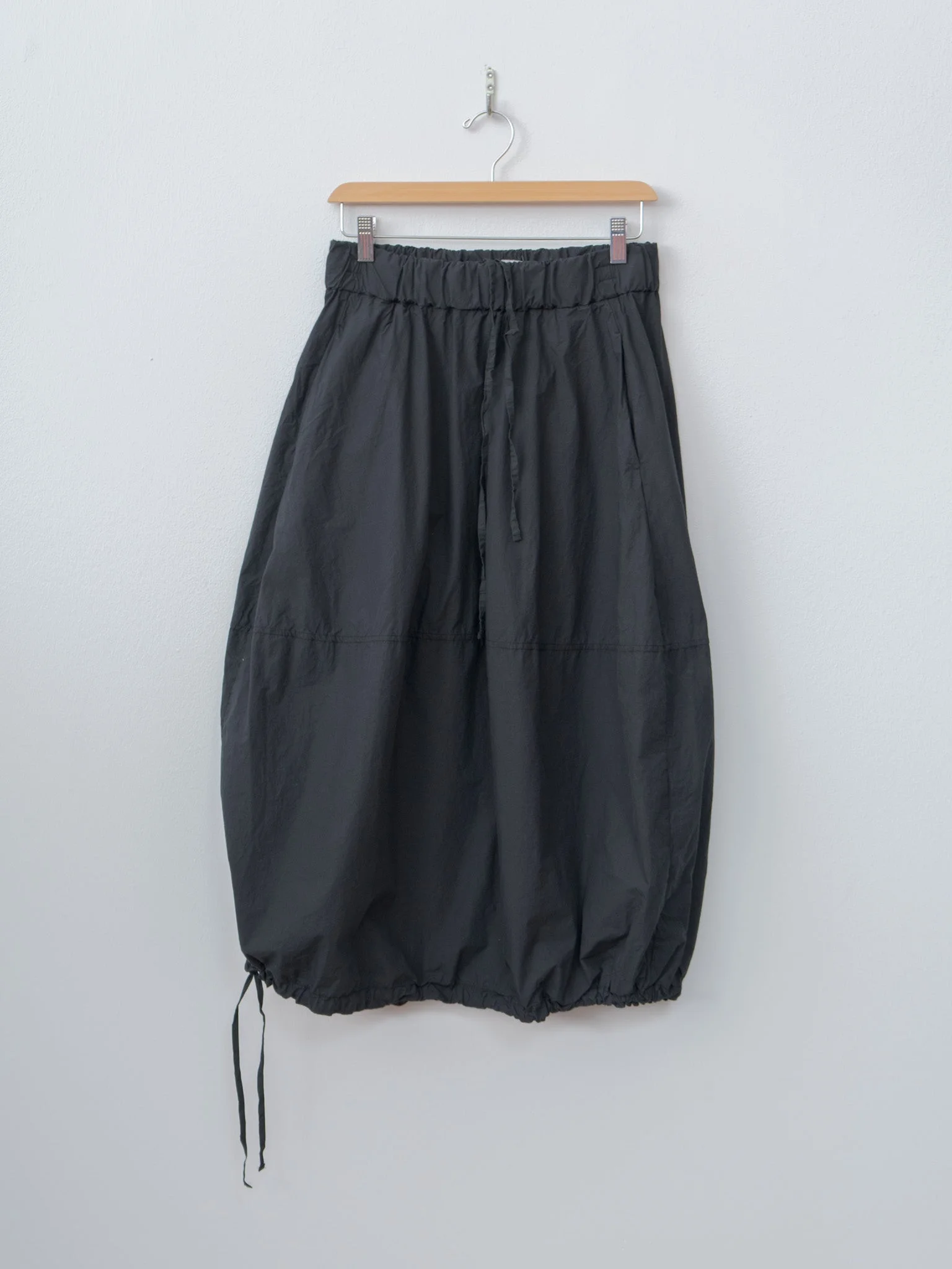 A light and airy balloon-shaped skirt featuring an adjustable drawstring hem that can be tightened to create different silhouettes. It is crafted from Album di Famiglia’s signature lightweight paper cotton, a crisp fabric with a dry touch. Details include an elasticated waistband with drawstrings, side pockets, and an adjustable tie at one side of the hem. - Made in Italy - 100% Cotton - Available in Anthracite (gray) and Black - The model is 5'8"/173cm and wears size S - The waist runs large and is meant to be tightened with drawstrings. We recommend taking your usual size or sizing down one size.