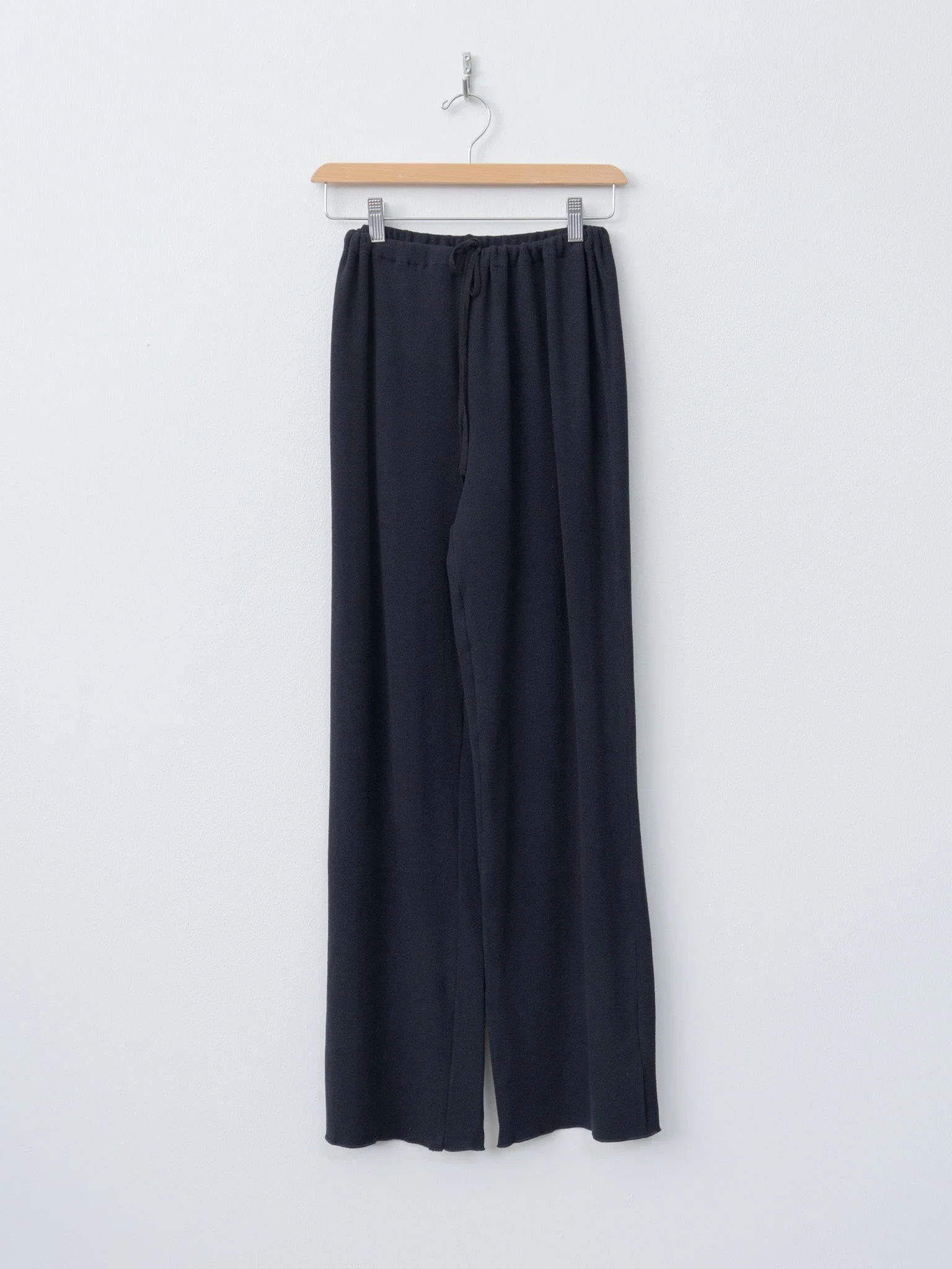 Slim fit straight leg trousers featuring a loose drawstring waist, full length inseam and clean overlocked hem. The signature JP fabric is lightweight, plush and bouncy. - Made in Italy - 48% Cotton 48% Acrylic 4% Elastane - Available in Ink (navy), Chocolate, and Black - The model is 5'7"/170 cm and wears size M - take your usual size or one size up for a looser fit