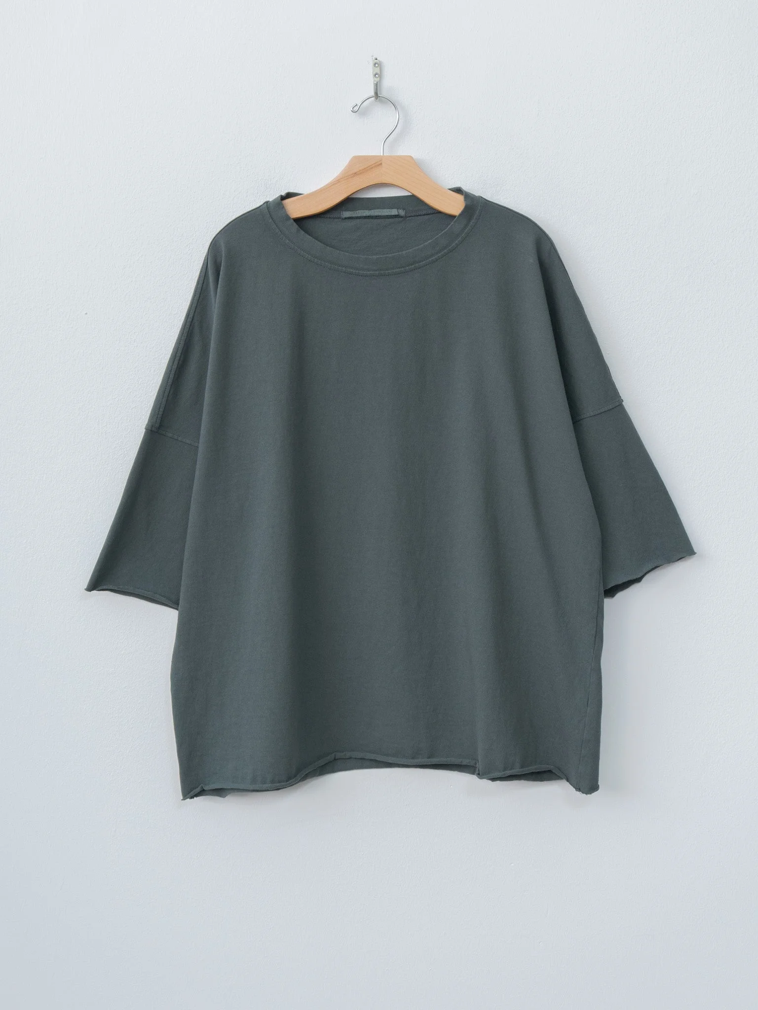 An oversized, boxy fit T-shirt crafted from heavy cotton jersey and feels like in between a tee and a sweatshirt. Features a loose crewneck, dropped shoulders and rolled edge hem and cuffs. - Made in Italy - 100% Cotton - Available in Thyme and Sage - The model is 5'8"/173cm and wears size S