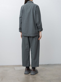 Easy trousers from Album di Famiglia featuring a drop crotch and loose tapered legs. The fabric is the brand's signature lightweight paper cotton that feels crisp and dry to the touch. Details include an elasticated waist with drawstrings, large front patch pockets, and side pockets. - Made in Italy - 100% Cotton - Available in Thyme - The model is 5'8"/173cm and wears size S - Unisex fit - for a more regular fit, size down one size