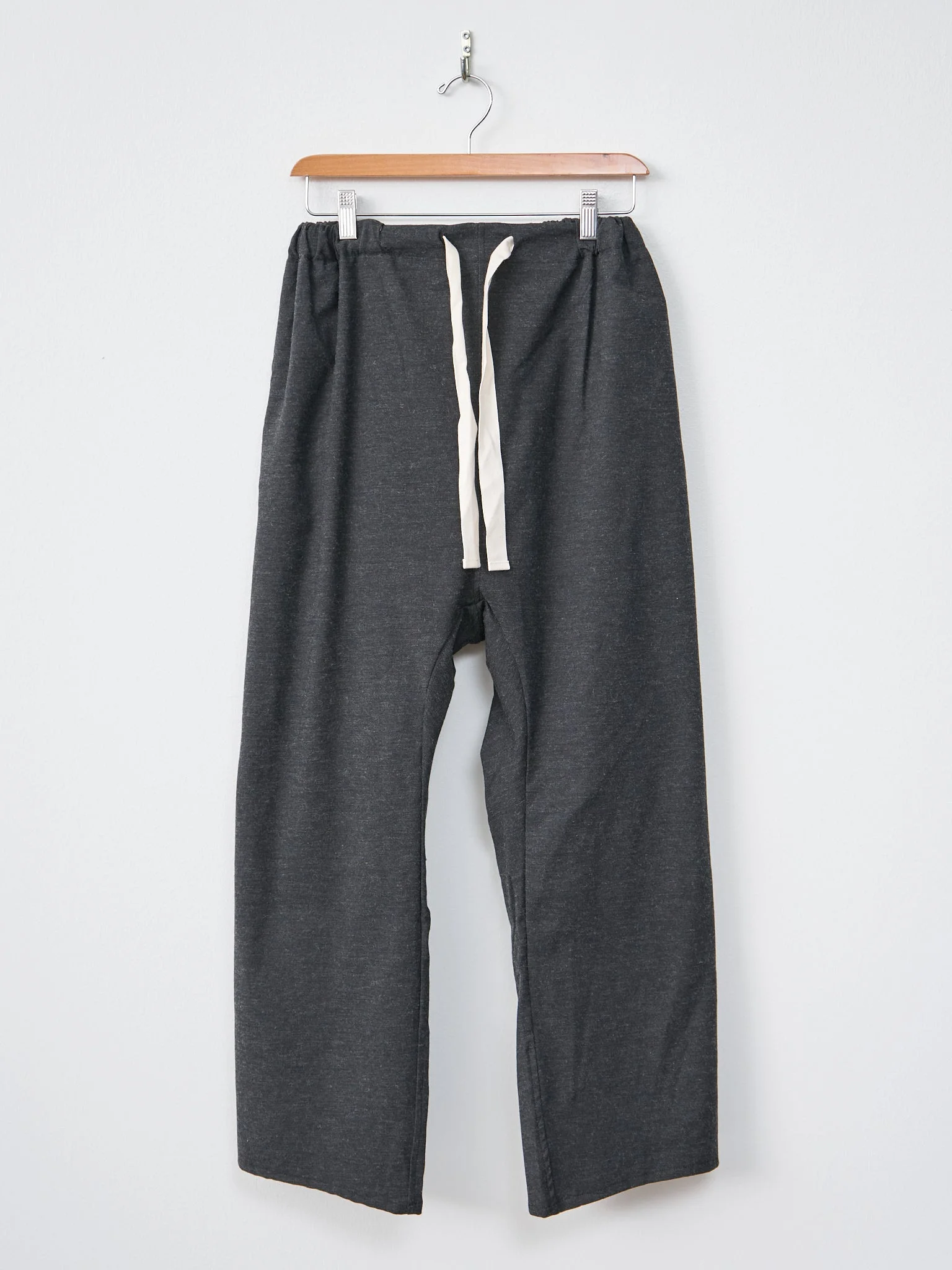 A new trouser style from Album di Famiglia with a nod to their signature Braghes. It features a high waist with a ribbon drawstring, wide legs, full length inseam, slight drop crotch, and side seam pockets. We love the easy, relaxed fit. Looks great with shirts tucked in or out. Midweight cotton wool blend in Slate. - Made in Italy - 57% Cotton, 28% Viscose, 13% Wool 2% EA - Lining: 100% Cotton - Available in Slate - Model is 5'7/170cm and wears size S - The waist is quite large on this style but is meant to be cinched. Only available in S and L - take S for S/M, L for M/L.