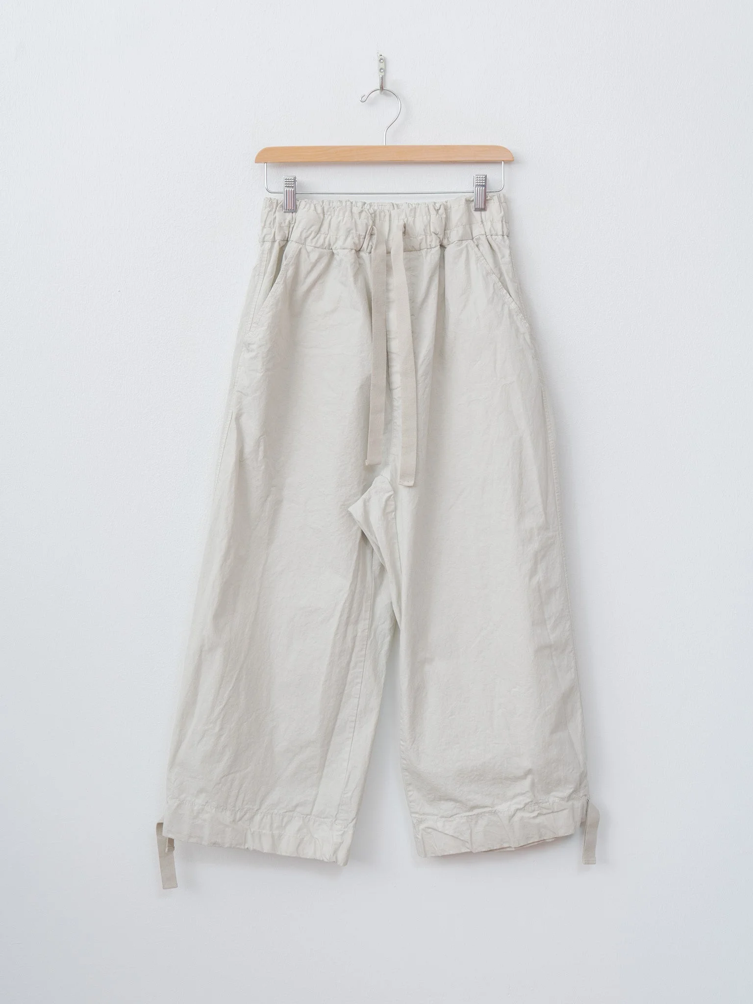 New this season from AdF is the Short Trouser, which is very similar to the W&S (Wide & Short) Trouser, with the addition of drawstrings at the hem to create a tapered leg. The midweight compact cotton feels structured yet breathable with a smooth hand. Details include an elasticated waist with drawstrings, side pockets and two lower patch back pockets. - Made in Italy - 100% Cotton - Available in Mauve, Pebble, Sage, and Thyme - The model is 5'8"/173cm and wears size S