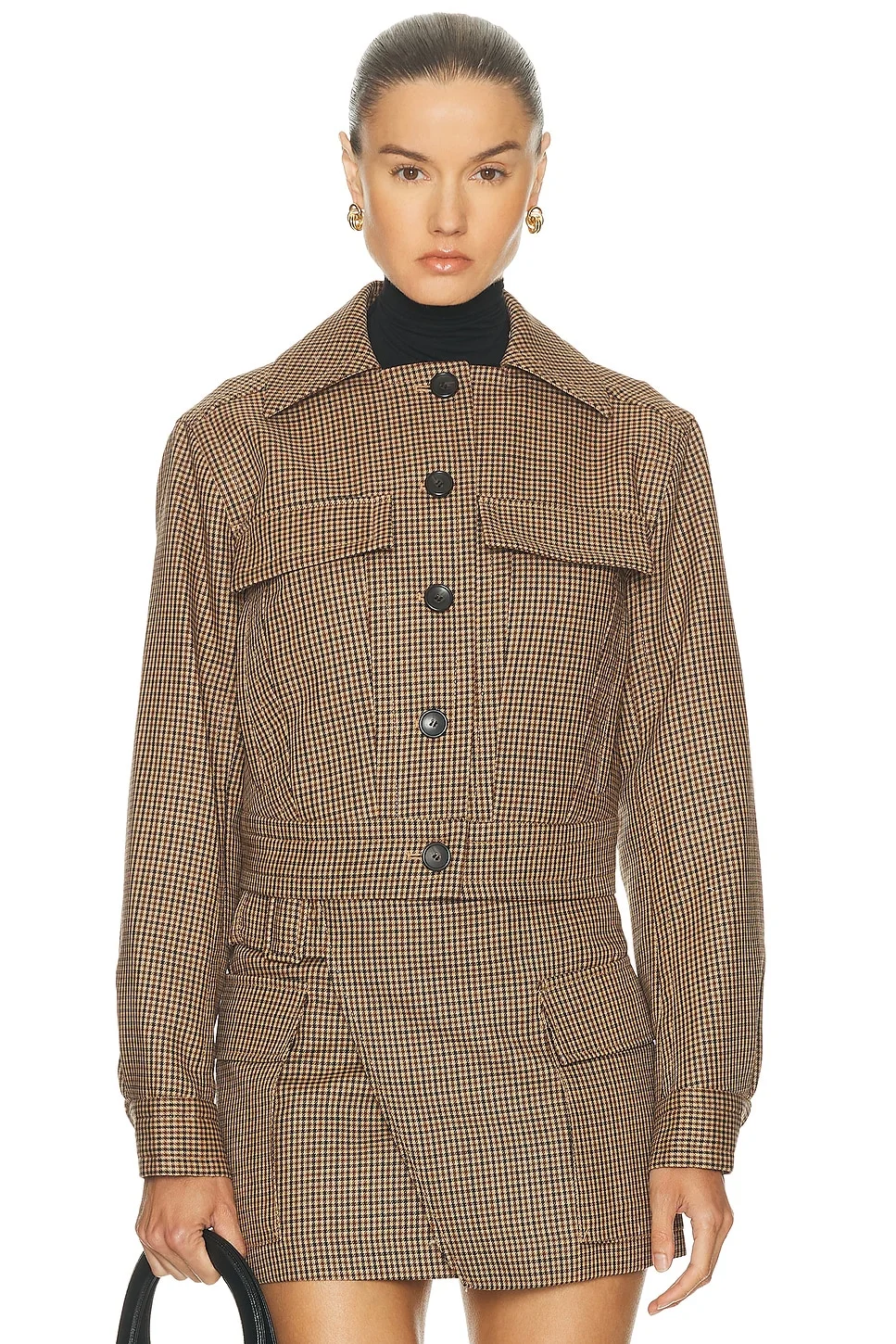 Details - Self: 100% wool - Body lining: 51% polyester, 49% cotton - Sleeve lining: 100% polyester - Dry clean - Front button closure - Slant welt pockets at sides - Decorative pocket flaps at front - Button cuff detail - Item not sold as set - Made in Vietnam - Our Style No. ALC-WO94 - Manufacturer Style No. 1JAKT01120
