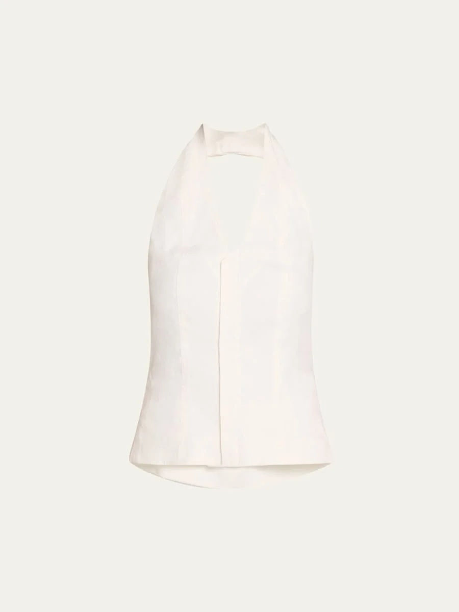 A.L.C. "Cora" linenblend top Halter neckline Sleeveless Fitted Hem sits at the hip Concealed front closure Linen/cotton/elastane Lining: Cotton/polyester Imported