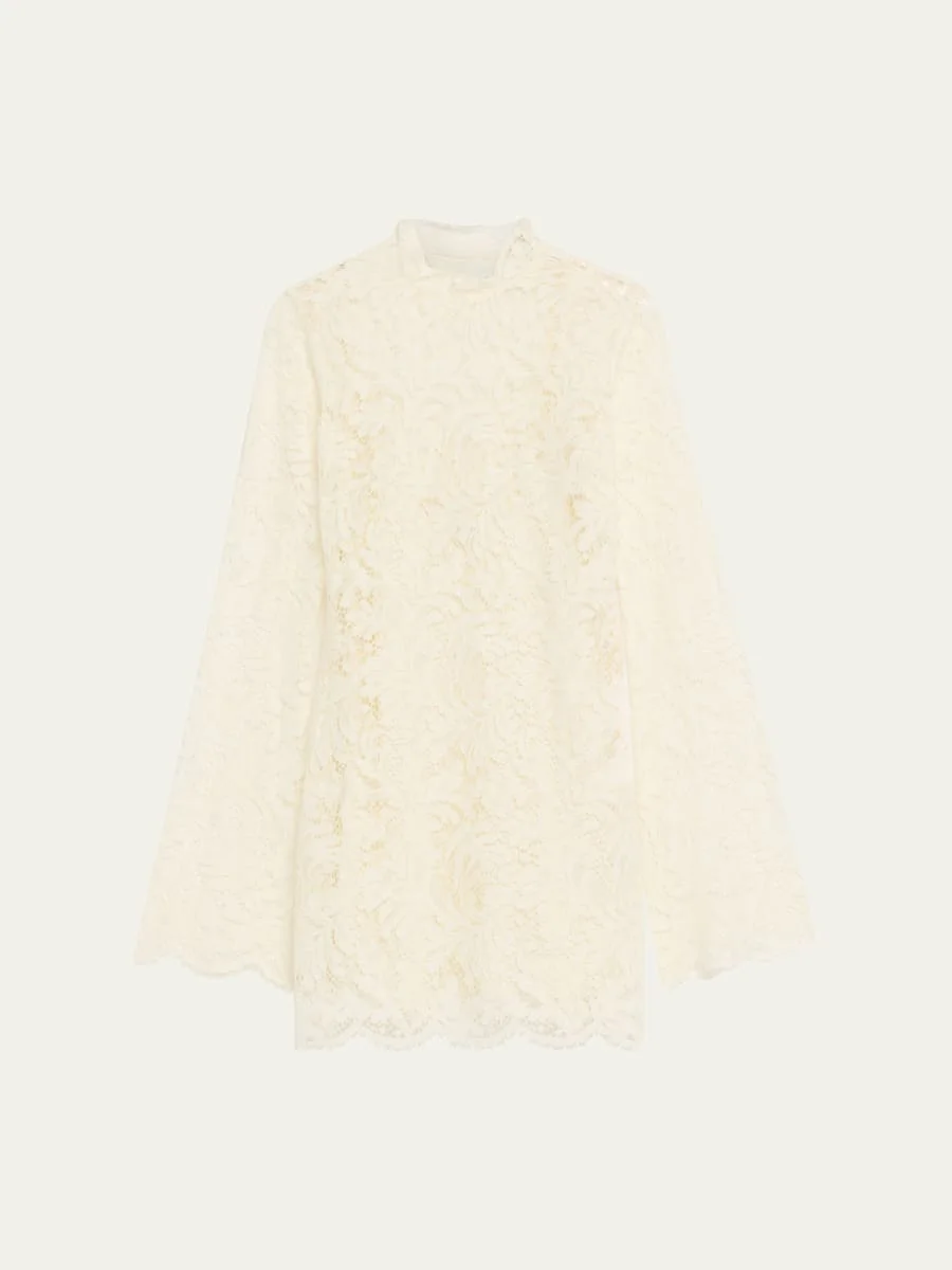 The "Eden" dress by A.L.C. is cut from archival French lace with a botanicalinspired pattern and finished with scalloped edges and a builtin slip Approx. 33"L from shoulder to hem Mock neckline Long sleeves Hem falls above the knee Shift silhouette Side zip closure Nylon/polyamide/cotton Lining: Polyester Dry clean Imported