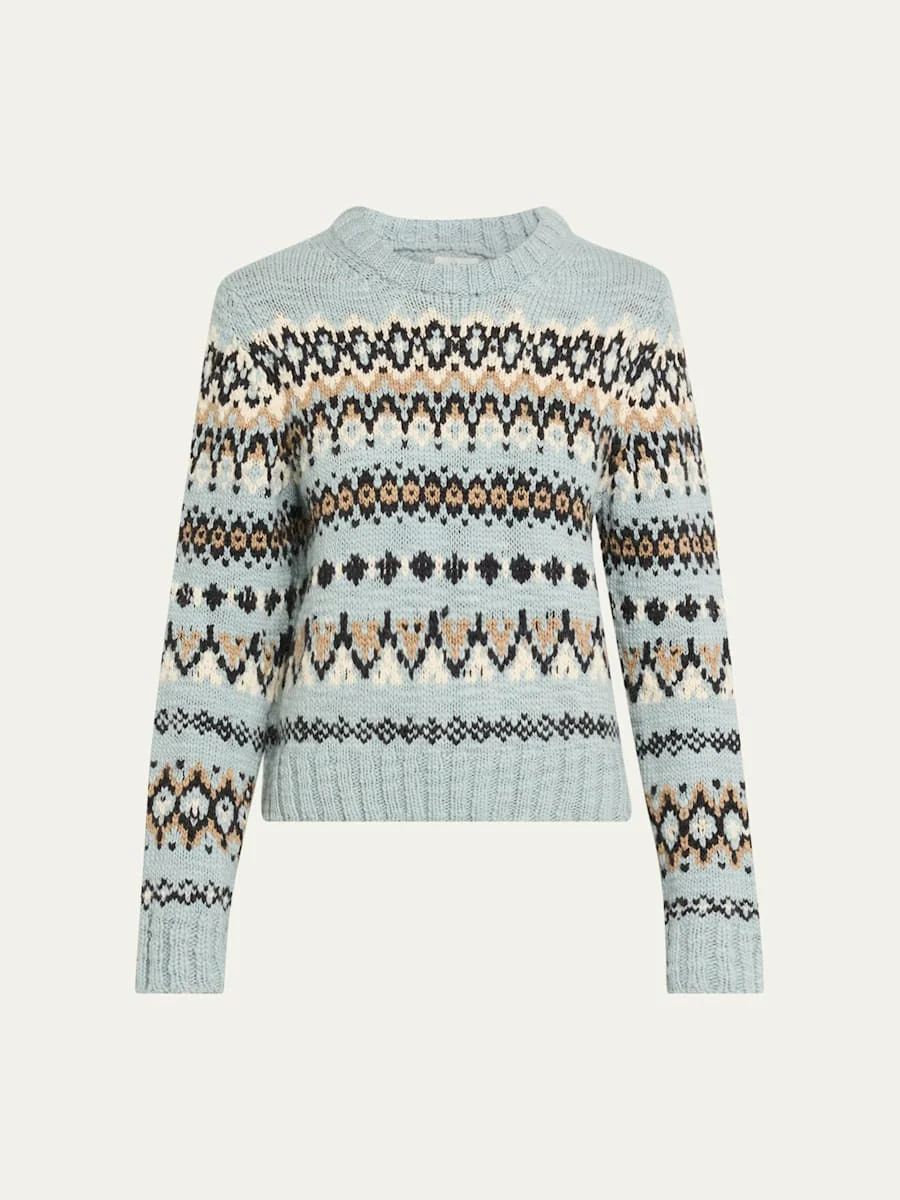 A.L.C. "Ella" handspun merino wool sweater featuring a fairisle motif Crew neckline Long sleeves Classic fit Hem sits at the hip Pullover style Wool Dry clean Imported