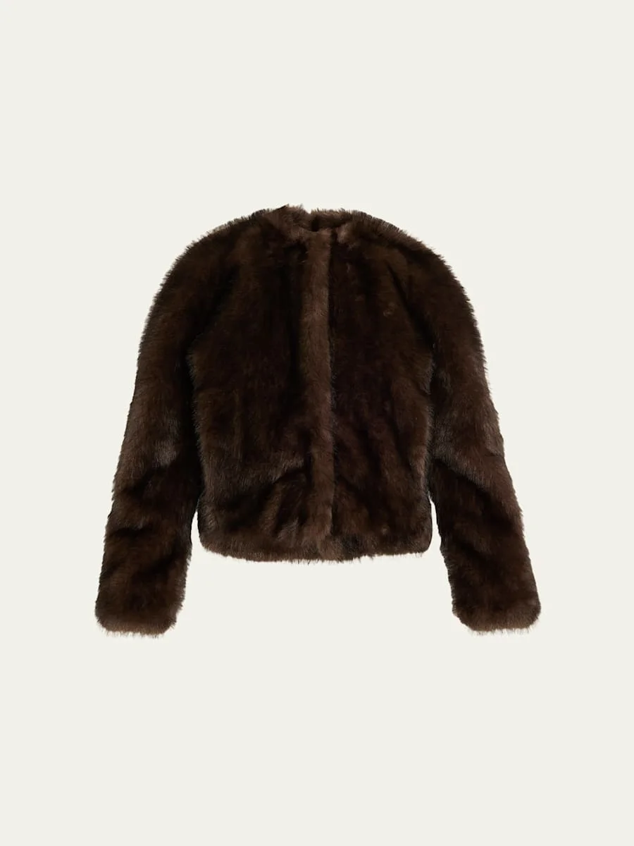 Crafted from cozy faux fur (polyester), the "Gwen" jacket from A.L.C. offers a sophisticated statementmaking design Approx. 21.3"L from shoulder to hem Collarless neckline Long sleeves; approx. 29"L Relaxed fit Hip length Concealed front placket Polyester Unlined Dry clean Imported