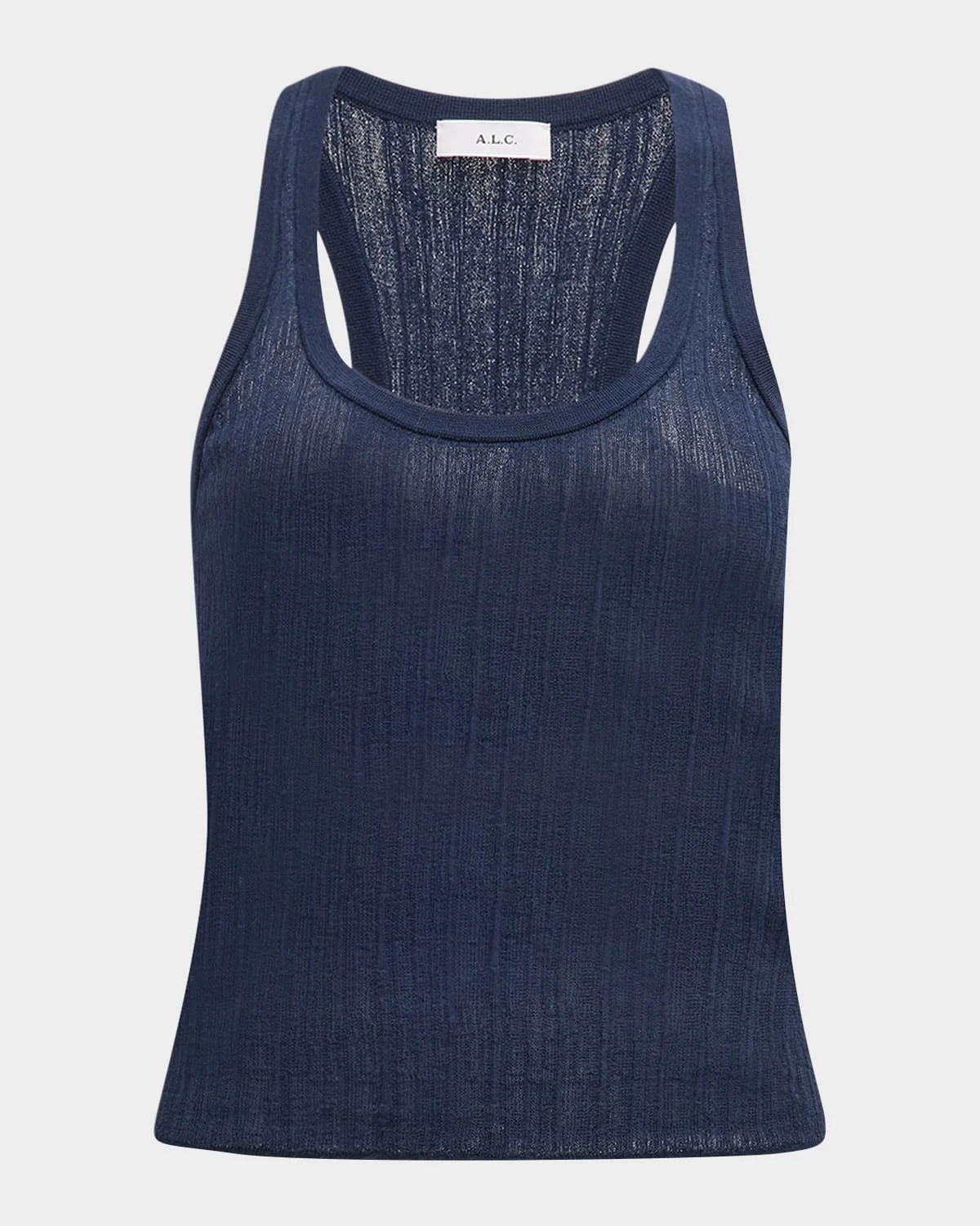 A.L.C. "Iris" tank top featuring a stripe motif in ribbed cotton Approx. 22"L shoulder to hem Scoop neckline Sleeveless Racerback FItted silhouette Hem sits at the hip Pullover style Cotton Dry clean Imported