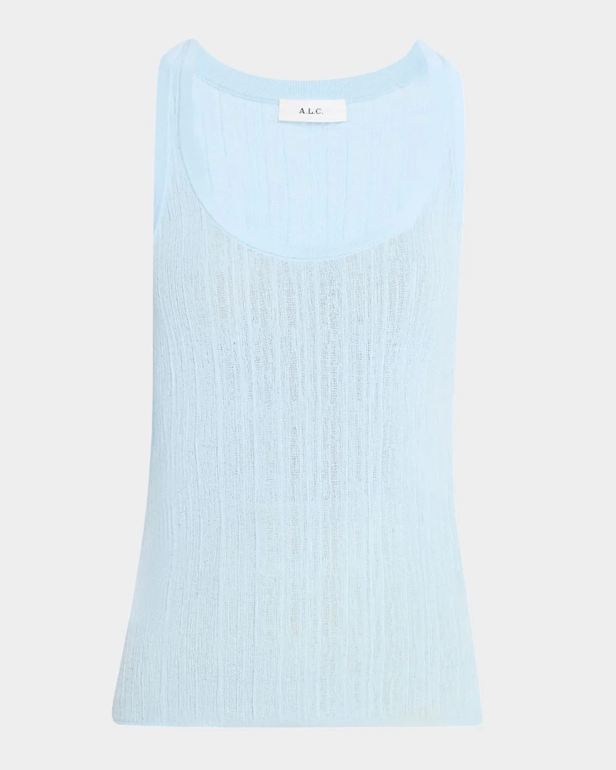 A.L.C. "Iris" tank top featuring a stripe motif in ribbed cotton Approx. 22"L shoulder to hem Scoop neckline Sleeveless Racerback FItted silhouette Hem sits at the hip Pullover style Cotton Dry clean Imported