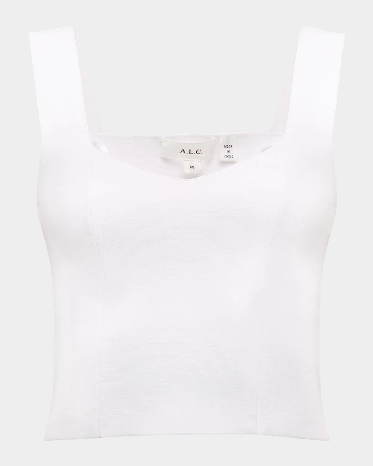 A.L.C. "Jordana" tank top featuring a sweetheart neckline and seaming Sleeveless Slim fit Cropped length Pullover style Viscose/polyester/nylon Dry clean Imported