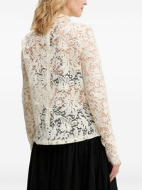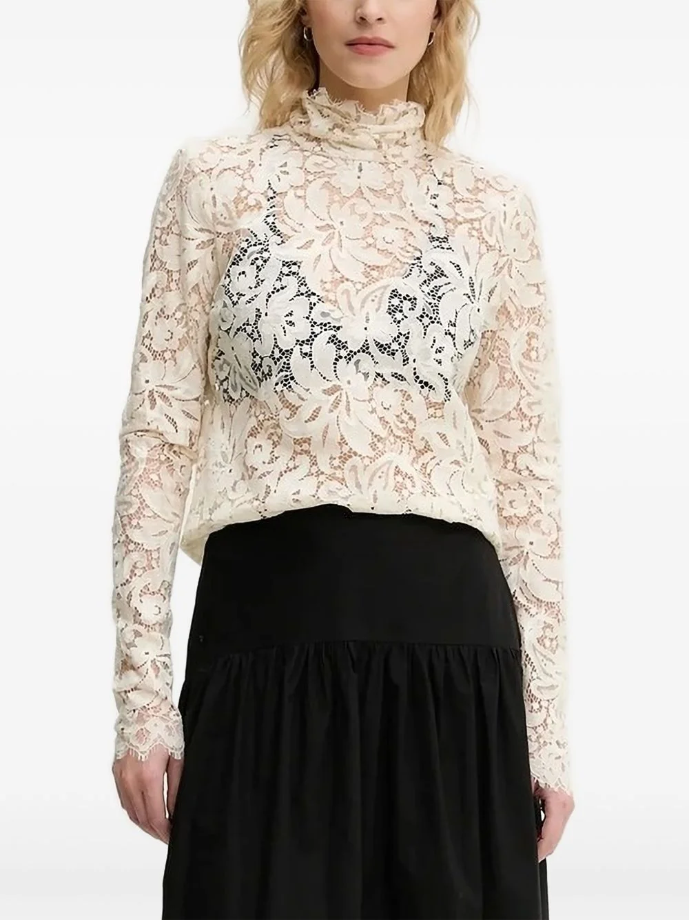 lace mock-neck blouse Highlights - Cream - Floral-pattern lace - Mock neck - Long sleeves - Back zip-fastening Imported Composition Cotton 76%, Nylon 24% Washing instructions Read Manufacturer Guidelines