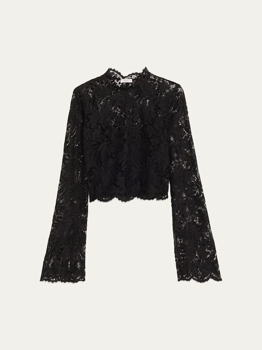 The "Margot" top by A.L.C. is cut from archival French lace with a botanicalinspired pattern and scalloped edges Approx. 20.3"L from shoulder to hem High neckline Long sleeves Relaxed fit Hip length Builtin camisole for comfort and coverage Nylon/polyamide/cotton Lining: Polyester Dry clean Imported