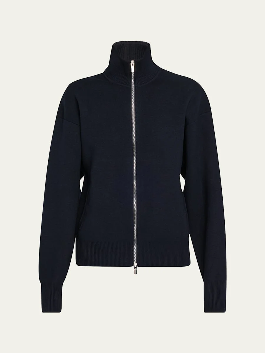A.L.C. "Oliver" cardigan with ribbed trim Stand collar Dropped shoulders Long sleeves Side pockets Relaxed fit Hem falls to the hip Twoway zipfront Viscose/polyester Dry clean Imported