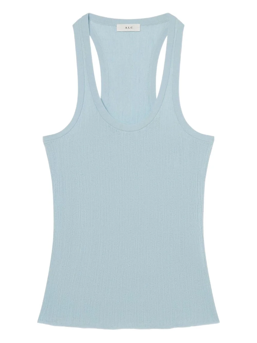 racerback ribbed top Highlights - Light blue - Ribbed texture - Racer back - Scoop neck - Sleeveless Imported Composition Cotton 78%, Nylon 22% Washing instructions Read Manufacturer Guidelines