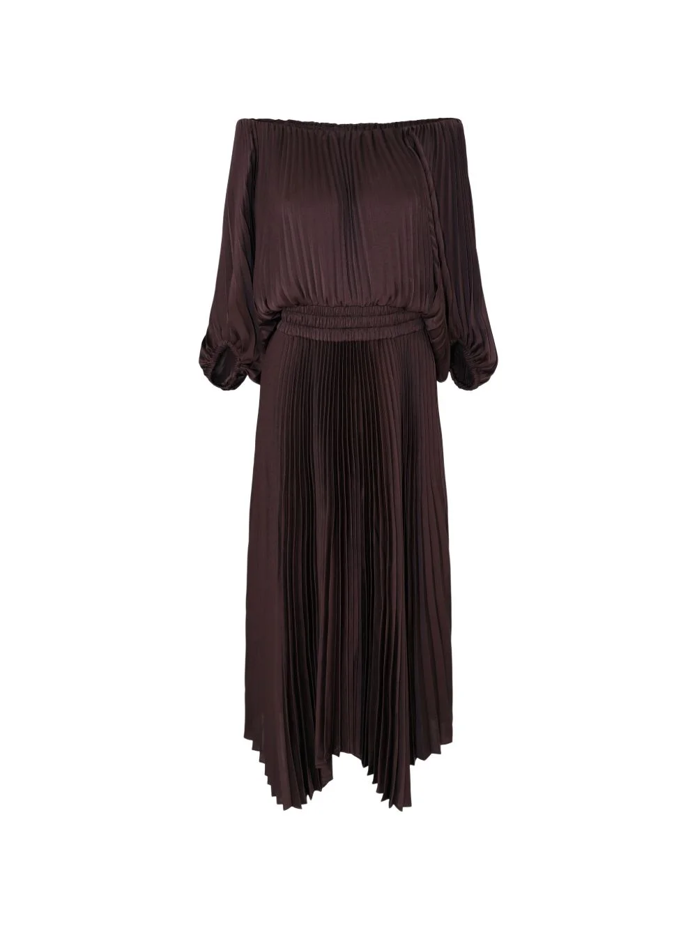 Sienna pleated off-the-shoulder midi dress Highlights - Burgundy - Pleated design - Off-the-shoulder neckline - Elasticated waist - Asymmetric hem - Long sleeves Imported Composition Polyester 100% Washing instructions Machine Wash